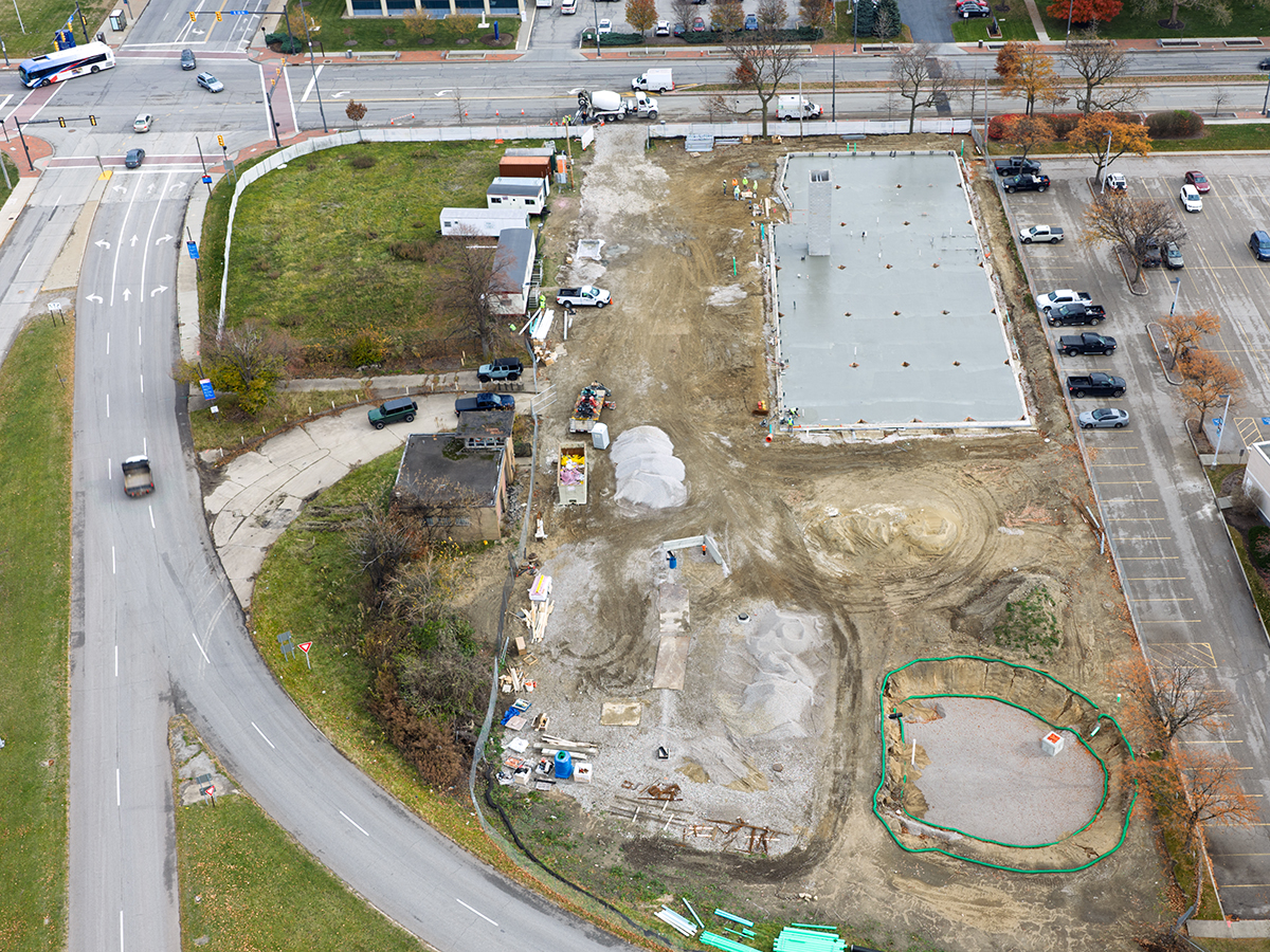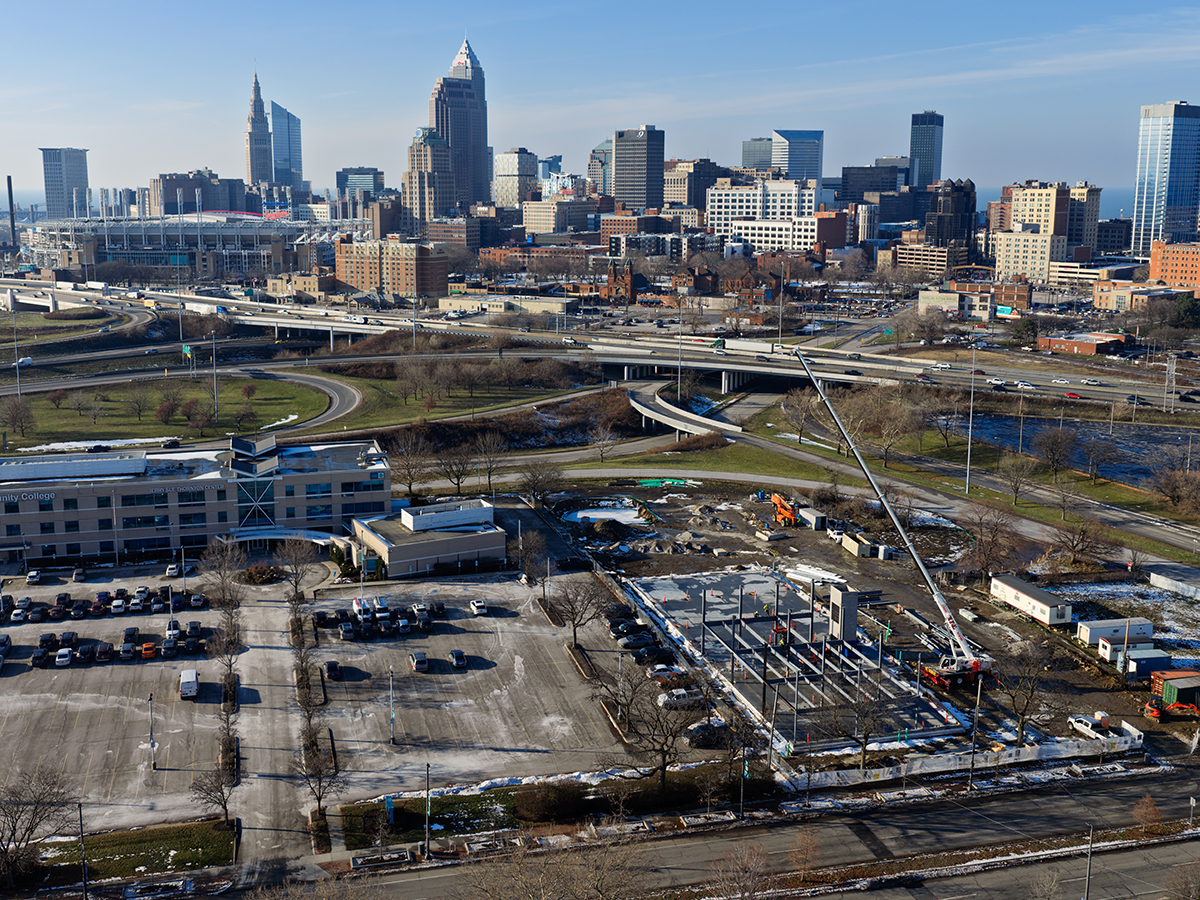 WRAC broke ground in July on its future heritage center, and construction is slated to be completed in Spring 2027. We invite you to visit this page regularly to follow the building’s progress through monthly aerial photos of the construction site. Watch the transformation unfold from a parking lot to a dynamic center for research, programming, and education on the edge of Cleveland’s downtown.