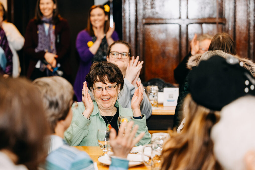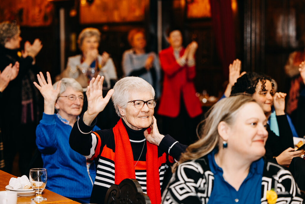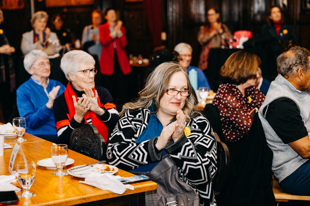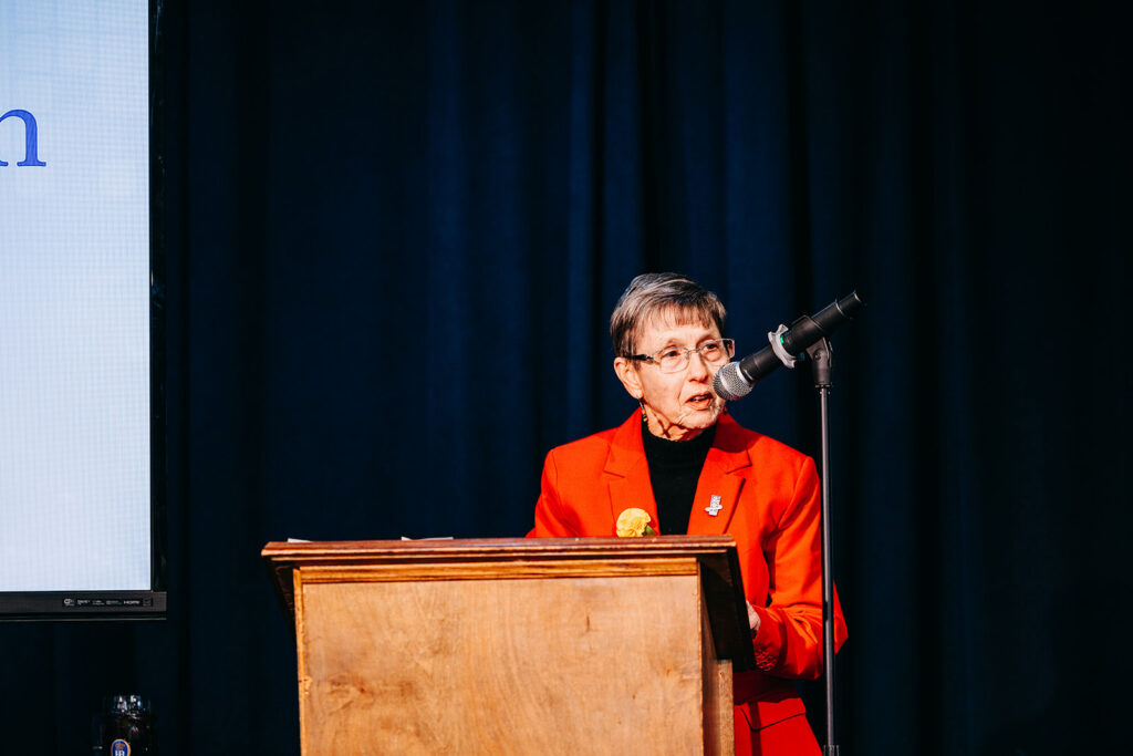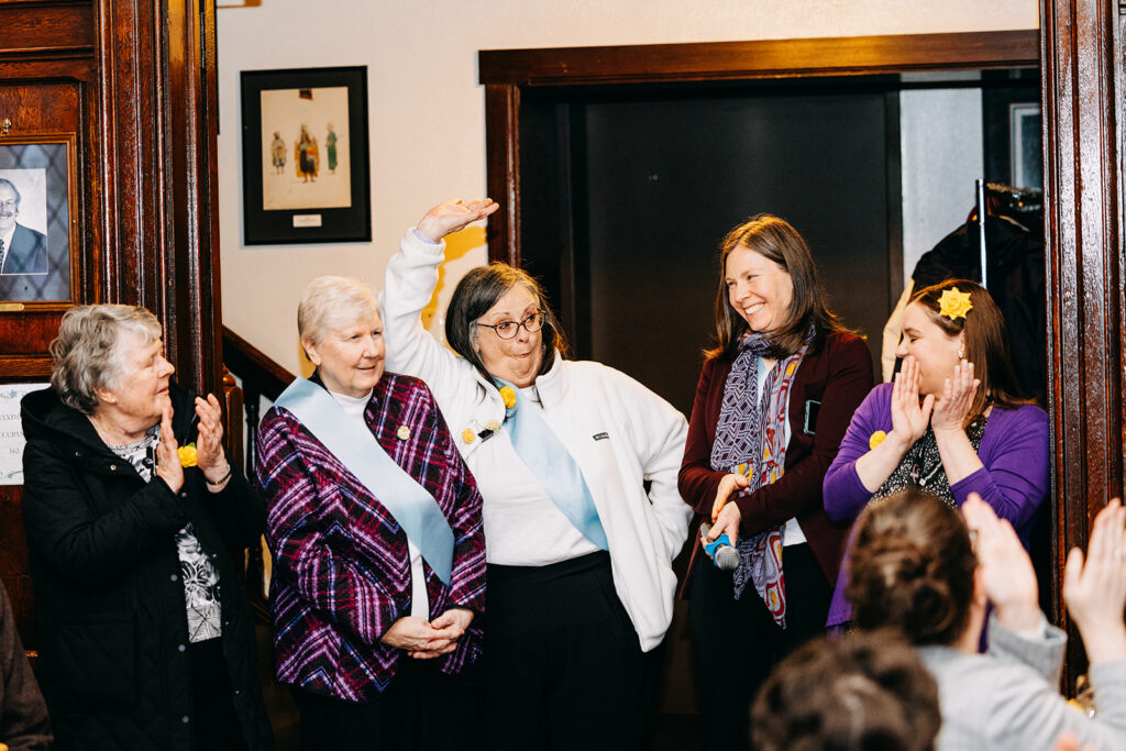 We were especially honored to have in attendance Ohio’s Ninth Congressional District Representative Marcy Kaptur, the longest-serving woman in congressional history. Her presence and remarks embody the very spirit celebrated in the Suffs performance. Representative Kaptur shared the impact that Catholic sisters had on her life of service and their role in empowering women throughout American history. She is a graduate of St. Ursula Academy, a sponsored ministry of the Ursuline Sisters of Toledo, and continues to stay connected to the sisters.
